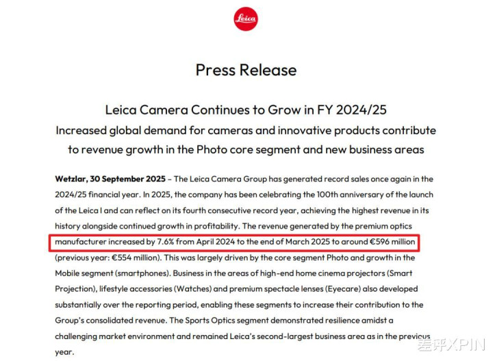 其次,增长可能触顶了,上一财年徕卡的营收增速放缓到了 7.6%,虽然还在涨,但势头明显不如前几年猛。