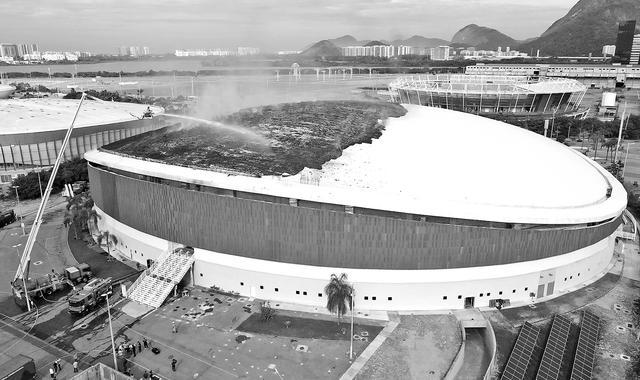 4月8日pk10,巴西里约热内卢,pk10官网消防员对里约奥运会自行车馆屋顶进行熄灭功课。 (视觉中国)