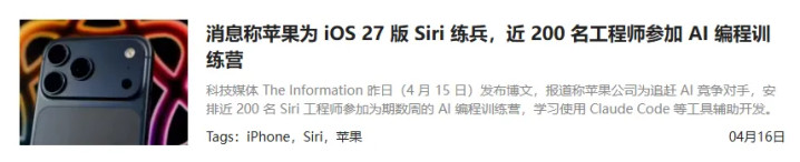 外媒报说念,苹果已安排近 200 名 Siri 工程师参加为期数周的 AI 编程「妖怪试验营」。