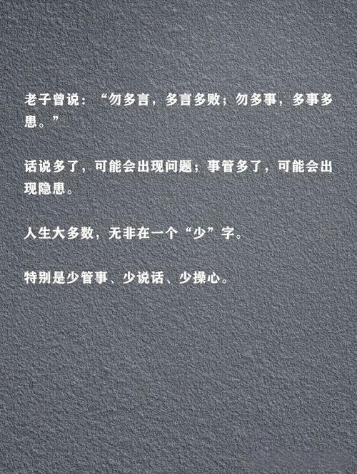 生命的丰盛不在于抓住多少,而在于放手多少。当“少管少说少操心”成为生活的修行,我们得到的将是更轻盈的脚步,更清澈的目光,和更宽广的自由。
