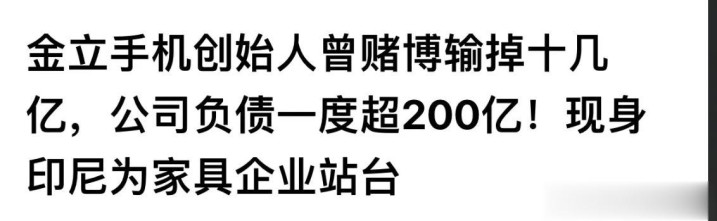 新浪财经《金立手机创举东说念主曾赌博输掉十几亿,公司负债一度超200亿!现身印尼为产品企业站台》,2026年4月16日