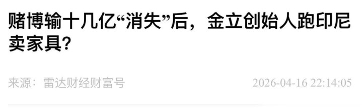 雷达财经 / 证券之星《赌博输十几亿"褪色"后,金立创举东说念主跑印尼卖产品?》,2026年4月16日