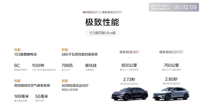 IT之家4月10日音讯,在今天的发布会中,焕新极氪007/007GT精采上市,订价20.39万元起,限时19.39万元起,IT之家整理价钱信息如下: