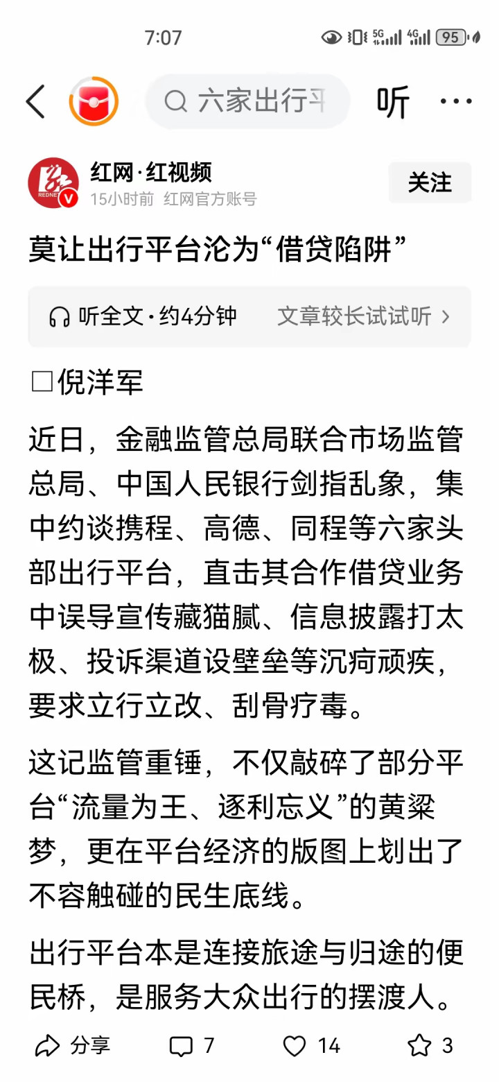 必须给金融监管总局点一个大大的赞!近日,三部门聚拢启航点,约谈携程、高德、飞猪等6家主流平台,直指平台配合网贷的违章乱象,向荒诞收割年青东说念主的不良网贷,郑重亮出“红牌”。这一刀,切中了庶民的痛点,来得太实时、太必要!