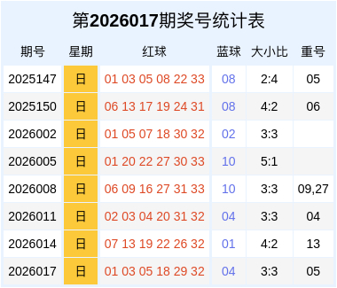 重号分析:上周日开出重号为05,在近8期同周日的奖号数据中,开出重号的概率为75.00%,本周日瞻望不会开出重号。