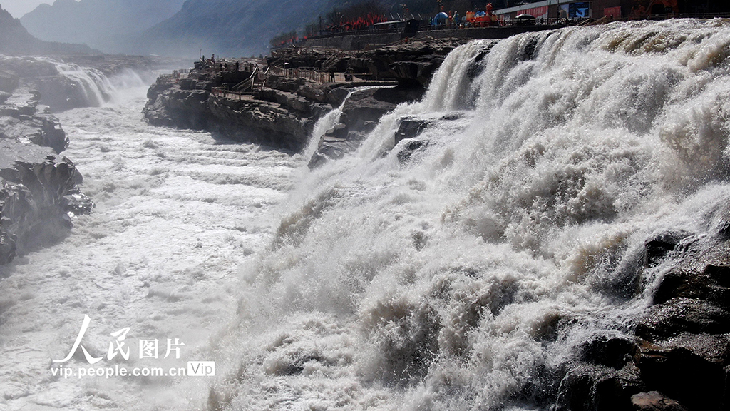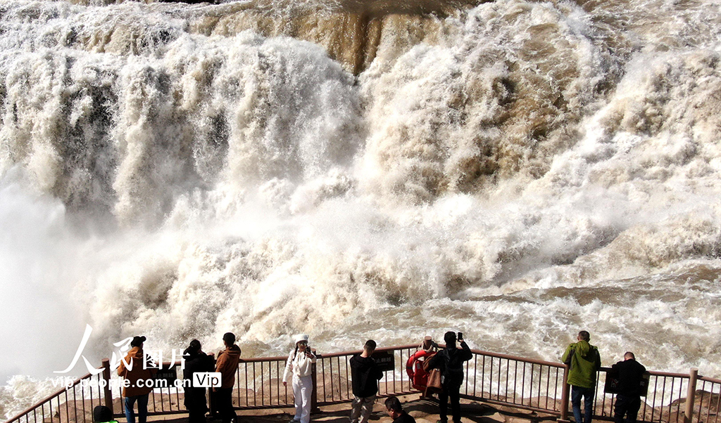 pk10官网壶口瀑布水势增大,威望磅礴,劝诱繁多旅客前来不雅赏。吕桂明摄(东说念主民图片网)" />