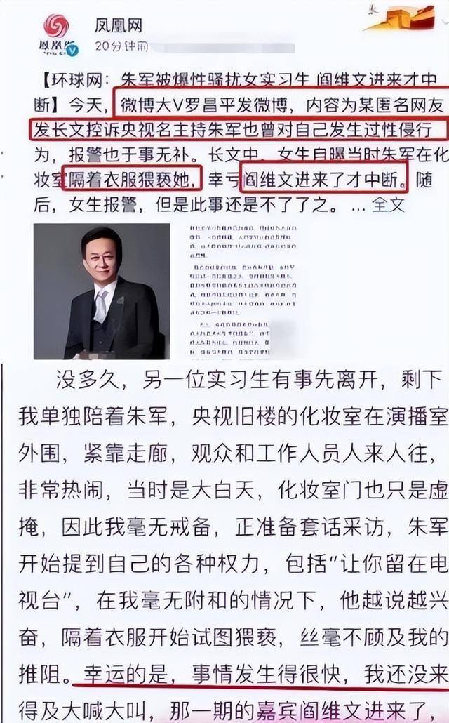 2018年,朱军案骤然引爆集会,一位名叫弦子的女生发文指控朱军性扰攘,还在刻画中有意提到:“幸而,阎维文进来才中断”。
