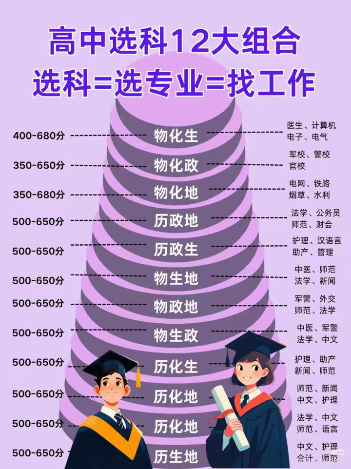 历史、政治、地理则偏向文科方向,历史对应历史学、考古学、汉语言文学等专业,政治适合法学、经济学、管理学等,地理则与城乡规划、地理科学、旅游管理等相关。但这并不意味着选文科就“轻松”,也不代表选理科就“有前途”,关键在于个人的学科优势和职业规划。