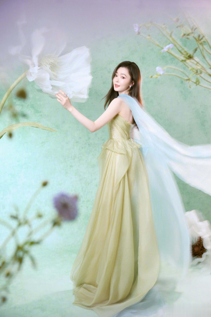 pk10官网 宋轶挂颈浅绿抹胸连衣裙