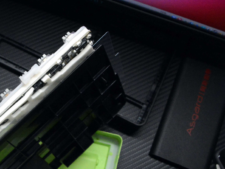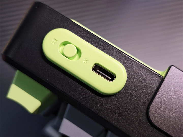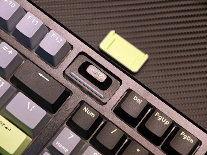 当作三模键盘,开关和充电(数据)接口树立在了左上方,拨动开关可以适度2.4G、有线、蓝牙形式,可快速切换5台成立,对于多成立用户比拟实用。