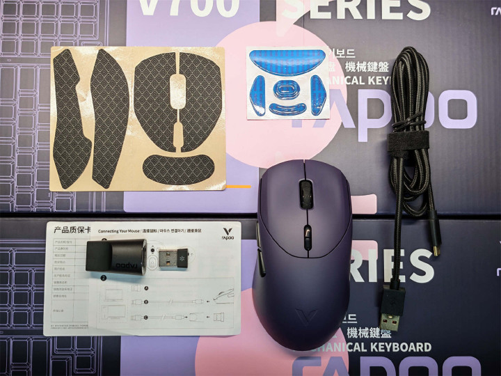 阻隔包装,除鼠标主体外,8K版2.4G无线给与器、8K高速屏蔽传输数据线、USB转接器、防滑贴、备用脚贴及产物诠释书一应俱全。数据线为编织材质作念工塌实更耐用,与手机数据线接口一致,通用性可以。