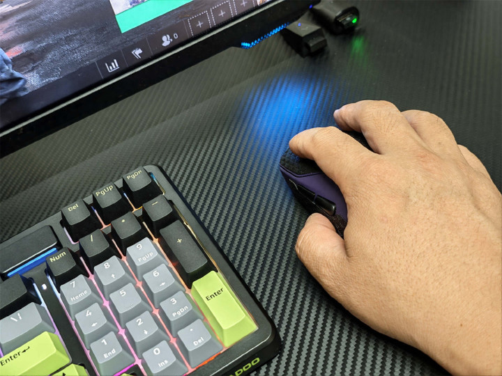 我手中的雷柏VT9MAX为极具辨识度的“电驭紫”配色,潮水感拉满,放在桌面既是外设亦然亮眼的搭配单品。“紫定行”么!机身给与亲肤防滑涂层,触感紧密不精真金不怕火,贴合度与跟手感王人可以,还能幸免指纹残留,出点汗也不滑手,清洁也很方便,只需要湿巾擦抹即可。