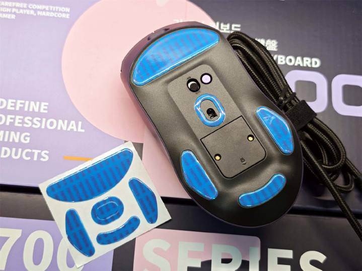 鼠标底部贴了5块特氟龙脚贴,遮盖面积大况兼均匀,灵验裁减摩擦力,操作起来顺滑运动且安定。比某些鼠标5点式脚贴强太多。不挑鼠标垫,即就是平整桌面一样打法。