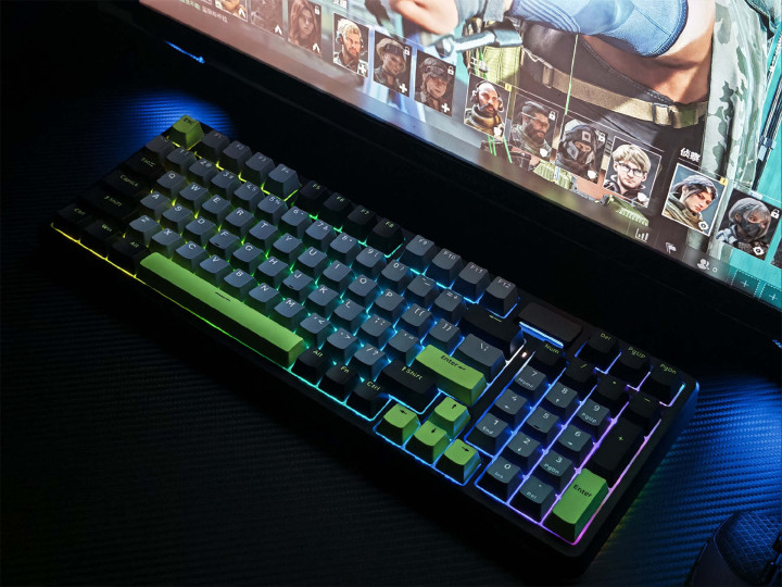 键帽给与高含量PBT材质,搭配双色注塑工艺打造,名义带有紧密磨砂质感,触感干爽不粘手,既进步了打字时的抓持舒截至,又具备超强耐磨性,灵验幸免恒久使用后出现键帽打油、笔迹腌臜的问题,永久使用依旧保持洁净澄莹的质感。