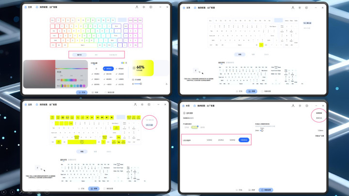 雷柏V700DIY-98长续航版机械键盘树立阳春白雪,灯光树立可以调理轴下、侧灯、RGB指点灯,多个面容调理,不仅预置了灯效,还可以自主树立,更是能调理亮度和灯光速率,在改键方面,Win层面和Win+fn层面双层树立,键盘功能可以按照我方的需求进行树立。键盘树立则可以树立USB陈述率从125Hz到1000Hz以及就寝期间。可玩性极高。